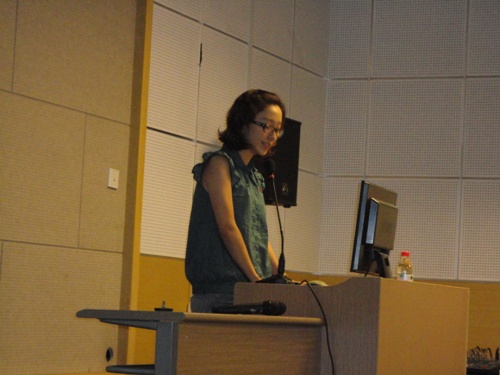 文学院“微笑”志愿者主题团队的负责人陈瑜则介绍了他们对苏州社区志愿者事业发展状况和影响调查研究的结果。通过她的介绍,大家不仅对苏州地区的志愿者事业有了一定的了解,同时也对社会实践的调查研究方法有了一定的认识。