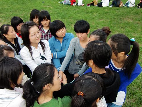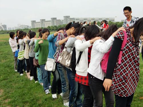 笔者亲自参与的是“解手链”,大家先纠结在一起,然后慢慢解开,不幸的是,笔者那儿绕不出来了,纠结了20多分钟,无奈宣布失败重来,在此游戏中,大家需要最默契的合作,还需要集体智慧,甚至需要为了集体而“牺牲”(为了解开手链,很多同学都要委屈自己贴在地上),当我们手拉手的时候真的有一种莫名的感动,仿佛感受到了对方的心。