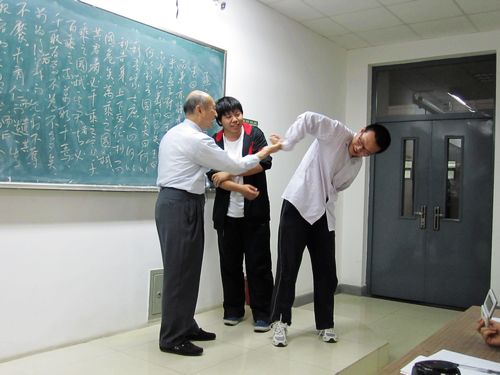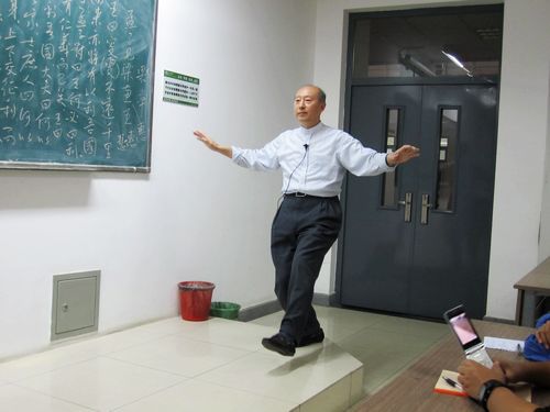首先,袁绍良教授从他的角度为大家讲解了“文质彬彬,然后君子”的深刻含义。他认为“止戈为武”,“动静结合”才能称之为君子,并且提醒同学们,作为文人,要学会保护自己,强身健体,他向同学们介绍了许多日常生活中的养生之道,在现场演示了很多太极动作,他的精彩表演博得同学们一阵阵的掌声。