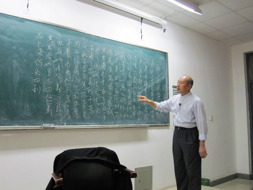 接着,他为大家演示了书法《孟子见梁惠王》,并作了精彩的讲解,让同学们更近距离地领略到中国书法的魅力。他还向大家介绍了很多繁体字的写法,激起了同学们对繁体字的极大兴趣。