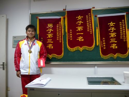 文学院在第48届校运会上一共获取三面锦旗,它们分别是独墅湖校区女子篮球第一名、独墅湖校区男子排球第三名和独墅湖校区女子排球第三名。除了这三面集体锦旗,文院还获得了一面私人锦旗。作为本次校运动会唯一的一位破校记录的王伟同学,他当之无愧地喜获锦旗,为文学院的荣誉增添了重要的一笔。