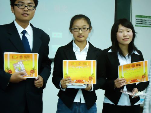 最终,来自汉语言四班的史爽爽获得了最佳辩手的称号,张子亮、陆竹影、朱宁萍、陈一新获得了个场最佳辩手称号,获得季军的是张子亮、陆竹影、李晓姣,获得亚军的是汉语言四班,获得冠军的是师范一班。