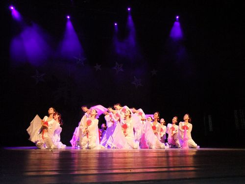 经过了2个多月的辛苦排练,由文学院25个女孩子带来的《梦里寻她千百度》也在舞台上华丽绽放,尽情诠释了女子轻灵娉婷,如满树桃花;庄严坚韧,似亘古青风。追忆女子的光华,青春被注入了神圣的使命;传承她的血脉,生命被赋予精神的力量。这红色青春在年轮里流转,在光阴里舞动;且抬头凝望,她已悄然绽放。25个女孩子,把一把把扇子,演化成淙淙流水,脉脉清泉。她们的笑脸,也点燃了观众心中的火热。