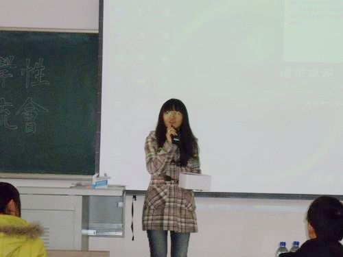 管理学院时影文学社她们社长徐扬通过ppt介绍:时影文学艺术社于1996年10月创办,有定期出版的杂志《时影》,时影文学社也有一段时间的沉寂,但后来又重新活跃起来,“时影”让我们看到了永恒。徐扬学姐还介绍了她们社开学以来所举办的活动:环保宣传活动、与弄潮文学社的读书交流会、“感动我心”的系列活动、骑行金鸡湖活动、新社员见面会、万圣节寻宝之旅活动、征文活动、读书会等等。