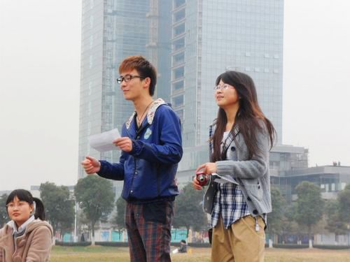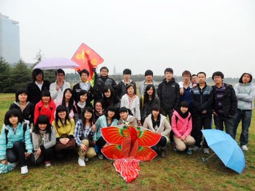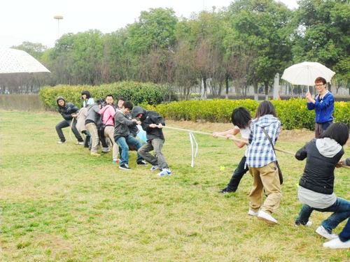 虽然在活动进行中,下了几次雨,但是不妨碍联谊活动的进行,大家依旧开心地游戏着。玩过了叠报纸,还进行了拔河比赛。最后,大家放起了风筝。男生秀起了放风筝的技术,同时也很绅士地将放上天的风筝交给女生,并且教女生们如何放风筝,大家在草地上奔跑着,放飞着那些各式各样的风筝,一片融洽、欢乐。