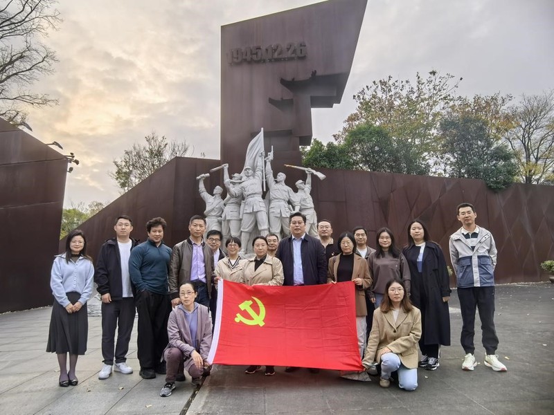 文学院党委于2024年11月16日-17日组织教工党员前往高邮抗日战争最后一役纪念馆(高邮战役纪念馆、侵华日军向新四军投降处旧址)开展“铭记历史、缅怀先烈、珍爱和平、开创未来”主题党日活动。高邮抗日战争最后一役纪念馆坐落在风景秀丽的历史名城高邮,这里不仅见证了中国人民在抗日战争中取得的伟大胜利,也承载了无数英烈的英勇事迹和中华民族的不屈精神。当老师们抵达纪念馆时,首先映入眼帘的是庄严肃穆的纪念牌坊,仿佛在诉说着那段烽火连天的抗战往事。