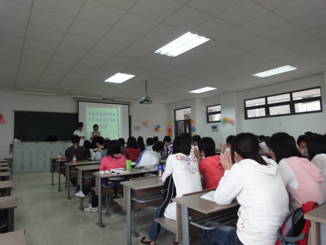 首先向我们展示的是文学院A队,解说人是张子谅。他一上台便说自己是“抛砖引玉”引来观众的一片笑声。也许是由于第一个登场有一些紧张,也许是赛前准备的并不充分,文学院A队的总体表现并不是太好,但张子谅同学幽默风趣的讲解使现场的气氛非常的轻松与活跃,也算是为下面的队伍开了一个好头。