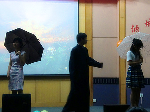 2011年5月15日星期日晚上六点半,第一届苏州大学诗歌大赛――“情定姑苏、倾城诉梦”在苏大东校区财经科学馆的二楼学术报告厅正式拉开了帷幕。开幕式由苏大文学院学工办和文学院社团联合会主办,由弄潮文学社承办。文学院、商学院各大社团负责人以及西交大文学社等多校文学社团负责人也都赶到现场来为本次的活动宣传造势。
