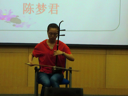 在歌曲表演中,陈金燕同学的一首《倾城诉梦》无疑很好的迎合了本次诗歌大赛“情定姑苏,倾城诉梦”的名称。而陈梦君同学的二胡独奏《江南春色》让大家久久的沉醉于古风古韵中,吴倩、戴晟的配乐诗朗诵《仓央嘉措情诗组读》则让大家在爱的诗篇里流连忘返。