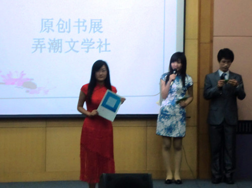 云天书画社为表示对此次诗歌大赛的支持,在活动现场为大家当场进行了原创诗展。而作为承办方的弄潮文学社,则在现场进行了一场原创书展,为大家展示了许多期的弄潮刊物,让大家对弄潮有了更多的了解。