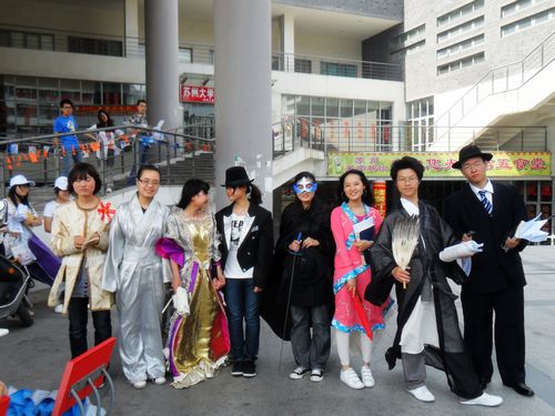 首先登场的是行为艺术展的演员们,他们分别扮起了林黛玉、诸葛亮、福尔摩斯、佐罗等大家耳熟能详的名著中的经典人物,他们将以在校园内游行的方式向同学们展示各种经典人物的风采。