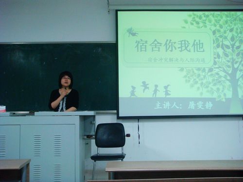 5月26日晚6:30,在文综楼的2204,我院学生会心理部开展了一场关于“宿舍冲突与人际沟通”的心理讲座。主讲人是来自苏大医学院的心理老师屠雯静。