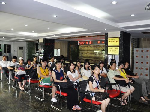 一大早,大家收拾好了行李,向着苏州城最南边的旺山村进发。到达旺山村后,首先观看了一个介绍旺山村的宣传片。旺山村是苏州最具规模的新农村,这里原本是一个破旧的小山村,几年来靠种植茶叶果树以及发展旅游经济发展起来。当地家家户户都住上了粉墙黛瓦的别墅,平均生活水平较高。这里不仅生活富裕,居住环境更是优美宜人。有苏州首个山水自然温泉,有雾气缭绕的翠竹林、大片的茶园,以及百米长的葡萄长廊,还有西施曾经沐浴过的越来溪。乘环村小车游览过村庄之后,大家集体漫步村野,感受清新的乡村气息。台湾朋友对大陆的新农村建设相当看好,还不时与台湾的乡村作对比。