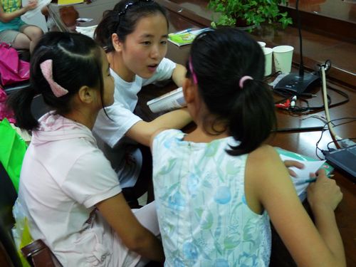 接下来,我们按通过年级分组的方式,将孩子们分组,不同的老师负责不同的小组,结合不同年级的教材内容,教授他们英语知识。虽然大学的专业课程是汉语言文学,但是毕竟学了多年的英语,教小学和初中的孩子绰绰有余。所以我们汉语言文学的队员们也纷纷上阵,参与进来。不过,面对初一的学生,我还是不可避免的心虚起来,生怕自己读错音标,记错语法。在英语专业的同伴的鼓励下,我们才渐渐自信,对学生们的问题应对自如。