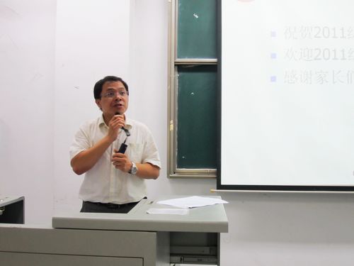 文学院党委副书记、副院长张健首先表达了祝贺、欢迎和感谢。祝贺11级新生走进大学的殿堂,欢迎11级新生加入文学院的大家庭,感谢家长们对文学院的信任和支持。他指出,家长和学生对大学学习都存在着误区,认为大学新生应当更加注重学业,并强调了大学的成绩和表现对一个学生未来的职业选择、个人成长和发展的影响。他用英国著名哲学家、数学家艾尔弗雷德• 诺思•怀特海的《教育的目的》中的一句警言“在中学阶段,学生伏案学习;在大学里,他应该站起来,四面瞭望。”告诉家长中学阶段的学习与大学阶段的学习是有本质区别的;大学生要把广泛地学习、深入地观察和独立地思考作为第一要务。张书记在关注孩子学业方面还为家长们提出了几点建议,如经常性的保持与学校的联系,特别是与班主任的联系;了解孩子的学习成绩和毕业文凭之间的关系等。最后,他还强调了自学和能力素质对大学学习生活的重要性,更要注重实践,走向社会,认真做好学业规划和职业规划,树立远大理想。