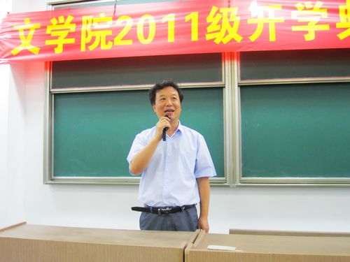 文学院党委书记王六一再次对2011级新生表示了欢迎、祝贺和感谢。欢迎同学们进入苏州大学,进入文学院,祝贺同学们经过十年寒窗步入大学,开始新的旅程。也感谢同学们选择了苏大,选择了文学院。王书记同样强调了学习的重要性,另外学会做人、完善自我在大学生活中也十分重要。