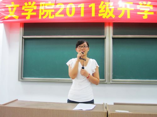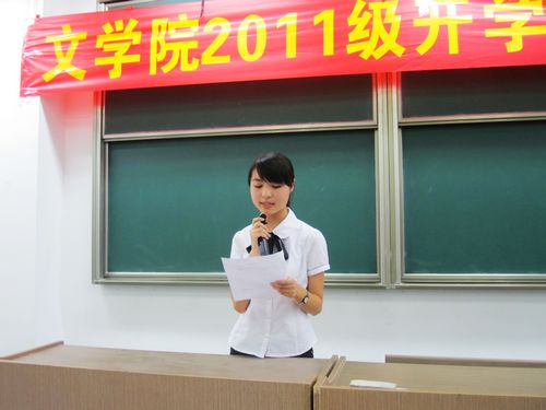 接下来文学院学生会主席蒋晨�与11级新生分享了她刚进入大学的学习生活经验。她叮嘱同学们要好好照顾自己,抓紧学习,积极参与校园文化活动,并调节好工作、学习、生活的关系。有任何困难随时可以寻求老师和学长学姐的帮助。