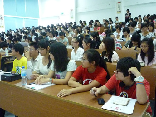 新一任学生会主席张振婷代表文学院学生组织欢迎11级新生的到来并感谢11级新生对文学院学生组织的信任和支持。按照抽签顺序,院团委、新闻中心、学生会、社联、科协依次进行宣讲。各组织充分利用多媒体,通过视频、ppt的方式向11级新生介绍本部门的特色、发展情况及招新要求。据悉,文学院学生组织及社团约30个,这为11级新生提供了更多选择和机会。
