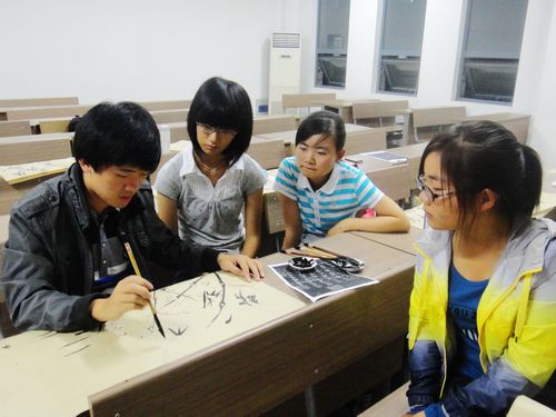 不知不觉中,时间已经过了一个小时,但社员们热情不减,要求继续练习,于是一群人围着社长坐下,开始学习绘画,