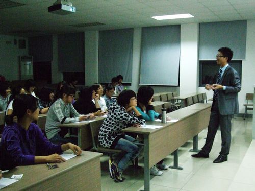 活动的最后戴学长和大家分享了他在苏州学习和生活经历感悟。他建议大家了解自己并定好目标,然后满怀激情的去实现目标。他的一句话引起了大家的共鸣:“纠结纠结就会不纠结。”之后大家积极地向戴学长提了许多问题,他也认真且幽默地做出了回答。整个互动环节既轻松搞笑又很有亲切感,大家就像一家人一样在一起聊天。