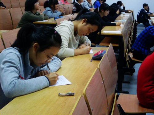 写作正式开始,同学们身形各异,有的在冥思苦想,有的在研究主题的注释,有的在打腹稿,还有的已经动笔了……考场一片寂静。8点过后就有同学陆续完成离开了。