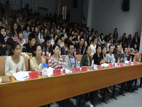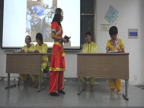 2011年10月16号晚,由文学院学生科技协会举办的文学院新生英语短剧大赛在文综楼1001#1101拉开序幕。本次比赛邀请了文院11级辅导员赵曜老师、来自西藏的德庆卓玛老师以及东吴剧社、学生会、科协、社联、新闻中心相关负责人担任评委,同时文院团委纪金平老师以及各兄弟学院科协理事长以嘉宾身份来到比赛现场。