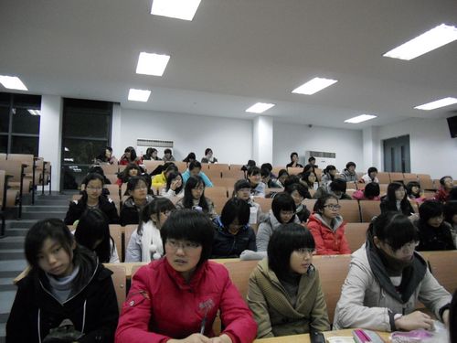 寒流无法令同学们学习的热情降温,在大家的热切期盼中马老师风尘仆仆地赶来,伴随着激昂的音乐,讲座开始。马老师关于四级考试的讲座主要围绕题型分析和技巧分析展开。首先,他请在场的同学对“好好学习,天天向上”进行翻译,并通过这个小问题充分地说明了在翻译中善用连接词的重要性。随后,马老师又以几个对中国成语的翻译令同学们真切的体会到在翻译中要把握句子的灵魂,否则很有可能词不达意甚至笑料百出。
