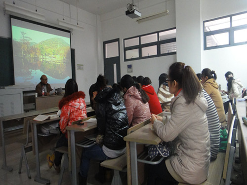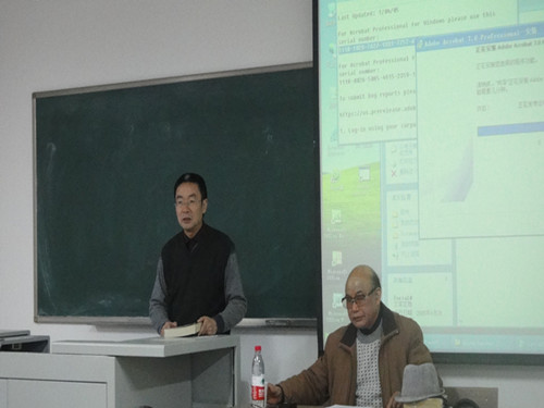 2011年12月14日下午两点,吴门雅韵系列讲座之“苏州园林的变迁”在文综楼4205举办。此次讲座由江苏省诗词协会副会长、苏州市诗词协会会长、沧浪诗社社长魏嘉瓒老先生主讲。魏嘉瓒老先生先后从事过教育、宣传、统战、文化、新闻工作,除了是一位闻名遐迩的园林专家,还是中华诗社学会会员、苏州市广播电视学会顾问、中国宝石协会会员。有人说,只有建筑、书法、绘画、文学各方面修养都到位的人,才有资格讲园林。而魏老精通之项颇多,造诣颇深,实为讲园林的不二人选。