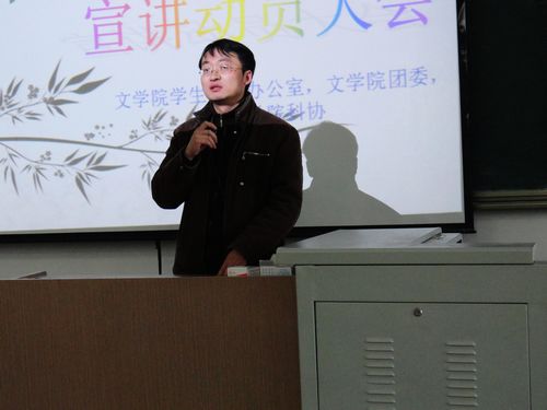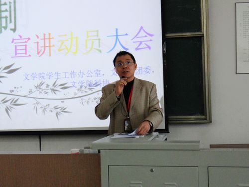 之后,导师代表杨旭辉副教授关于导师制对于学术方面的影响作了发言。杨旭辉副教授表示,只要同学们愿意学,无论是十个导师还是文学院其他老师,都会给予帮助和鼓励。同时,他还结合了自己的相关经历来鼓励同学们积极主动学习。