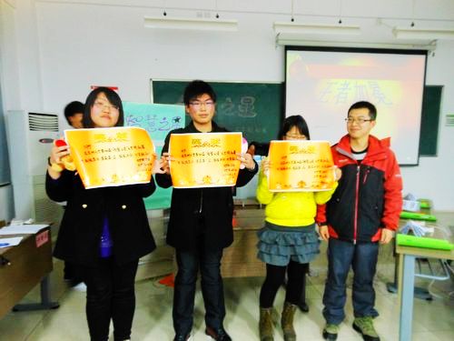 此次竞赛共分为“沙里淘金”,“掷地有声”,“流金岁月”,“兵贵神速”四个部分。第一环节采用淘汰制,所有参赛选手同时答题,每次答题结束后请举牌亮出自己的答案,正确的留着答案,错误的揭去错误答案的便利贴,所有题目回答完毕后统计正确题个数,并进行排名。经过一番比拼之后,施安康等六名选手脱颖而出,进入到接下来的比赛之中。在必答题环节中,题目涉及语文、英语、数学、历史、生活、宗教各个方面,新颖奇特的内容使得选手们措手不及,纵然苦思冥想也不得解,急得台下的观众们也忙着想答案,场面十分热闹。在激动惊心的风险题环节中,选手们冒着答错扣分的危险抢答问题,他们紧握手中的抢答器,生怕自己错过机会,而现场也配合地安静下来,抢答器的滴滴声使现场感觉起来火药味十足。 当然,激烈的比赛中也充满欢乐的气氛。在一个比划一个猜的游戏中,选手用形体摆出字母的形状,滑稽搞笑的动作惹得同学们捧腹大笑。主办方更贴心地为台下的观众准备了有奖竞猜的环节,让在座的每一位充分地参与其中。 选手们在比赛过程中展现的踊跃与热情,充分展现了文学院11级同学们的智慧与自信。知识的火花相互碰撞、摩擦,也点燃了在座同学们的激情,使这场知识与娱乐融为一体的竞赛,在丰富大家课余生活的同时,传递了博闻强识的学习精神。比赛固然重要,但更为重要的是比赛的最初目的不是得分,而是激励更多的人去学习。 最后,来自汉语言文学一班的施安康以133的高分夺魁,汉语言文学三班的赵安琪,师范二班的邓欢位列二、三名。他们也将代表文学院出征“智慧之星”接下来的比赛。祝愿他们能够再接再厉,用智慧为文学院增光添彩。