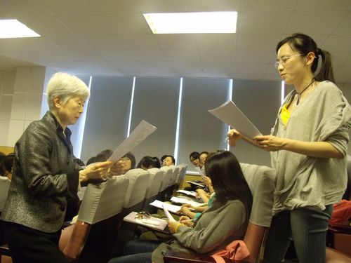而后马真教授便开始了严谨又不缺风趣的讲座。她以副词“也”的用法起头带领大家走出了曾经的误区,接着又讲了表示范围的副词“只、光、净和都”、表示时间的副词“就、才”、副词“曾经、已经”等几个专题,每个专题配以大量的例子生动有趣地说明了如何在书本上和语言生活中发现问题。期间,马真教授反复强调:在初步获得看法时,不要轻易肯定自己的意见,要反复比较并善于思考;作为学汉语的学生,也要加强中文与外语之间的联系,有时换个角度更能发现问题。