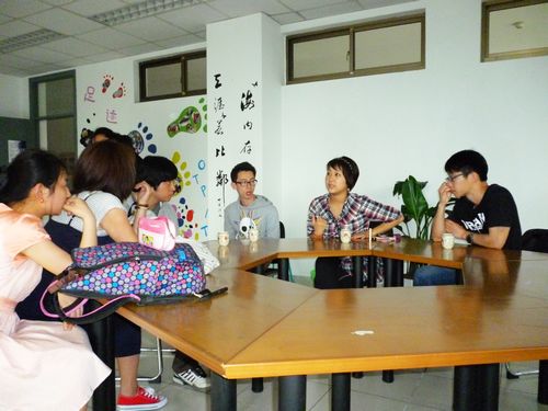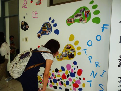 刚刚投入使用的汉语俱乐部东区活动办公室是汉语俱乐部的活动根据地,当天,作为第一次大型汉语角常规活动,“魅力中华之锦绣汉服”就是在活动室举行的。活动伊始,大家在干事们的带领下参观了崭新的活动室。活动室里放置了一些由老师、同学所捐助的供同学阅览的关于汉语学习方面的书籍,还有两台电脑。同时,活动室里还设有交谈区,留学生们可以在开放期间前去与中国同学们进行交流。最后大家的目光被贴在墙上的若干张照片吸引了,这些照片记录了以前的汉俱交流活动,被干事们匠心独具地贴成了“脚丫子”形状,象征了汉语俱乐部的发展足迹。