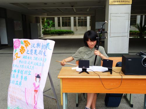 汉服展示之后,几位留学生对汉服产生了浓厚的兴趣,并在干事们的帮助下,亲自穿上汉服,过了一把“穿越瘾”。过后,汉俱副社长李乐天同学表演了笛子独奏,《我心永恒》•《欢乐颂》这两首西方乐曲用中国传统丝竹乐器演奏下来也是别具风味。汉俱广宣部部长高璐璐的二胡独奏《二泉映月》,《月亮代表我的心》同样也获得一阵喝彩。表演结束后,她还耐心地教授几位留学生演奏二胡,留学生们用并不熟练的中文表达了他们对二胡演奏的浓厚兴趣。