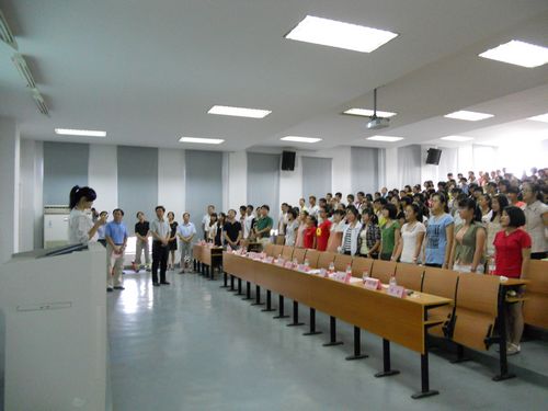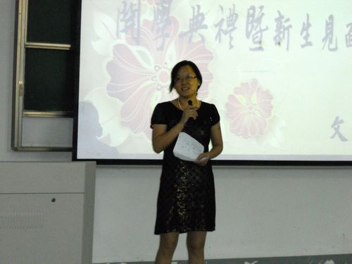 除了老师对新生的欢迎,09级的张振婷学姐也代表老生表达了对新同学的欢迎。作为学生会主席,张振婷落落大方地为同学们介绍了大学的生活,并在角色转换上,对新生们提出自己的建议。而后,新生代表徐钰烨也和同学们分享了自己步入大学的心情和憧憬。