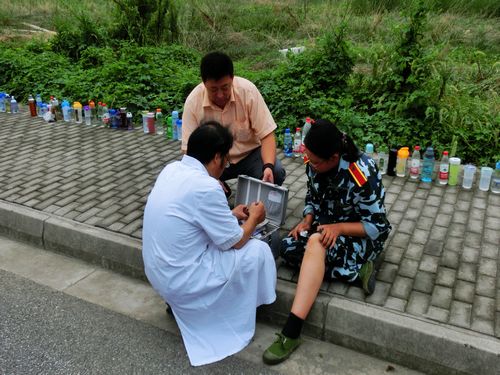 训练有没有苦?当然有!一个姑娘的腿在几天的训练下磨破了,在一旁接受校医的治疗。痛么?当然痛!但不再会说出口了,因为她已经拥有了一点军人的气魄,那痛的声音已经蜕变成迷彩色的美丽。