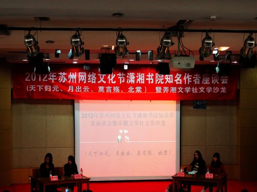 活动还未开始,大批来自五湖四海的书迷便已入场,由此可见网络文学的流行范围之广。活动开始后,四位嘉宾依序入场,主持人开始介绍潇湘书院的建立历程,让大家的对网络文学展示的一个平台有了初步的了解。随后四位嘉宾对自己为何会从事网络作家这个职业做了简单的解释。接下去到了最热烈的现场观众与嘉宾的互动提问环节。各地的书迷们十分热情的向四位网络作家表达了自己对她们作品的喜爱,并提出了一些问题。四位嘉宾十分配合的一一回答了大家的问题,有些作者的回答妙语连珠,让现场书迷忍俊不禁。其中,有书迷提出了网络文学与传统文学有何区别,网络文学是否可以归入传统文学,传统文学对待网络文学是何态度这一系列问题。曾出席过作协举办的第一届网络文学研讨会的天下归元对此做出了回答。她坦言,传统文学如今并不能完全接受网络文学,但是网络文学也并不需要网络文学的接受。所谓好的文学作品,只要做到能给予读者积极向上的力量,便是成功的。这一点在传统文学和网络文学中是相同的,而她也一直在为能够写出让她的读者获得力量的作品而努力。现场书迷对于这一回答十分满意欣喜。最后,此次活动在十分有趣的抽奖活动中结束。结束后,许多书迷激动的上去与自己喜爱的作者合影,座谈会在这样和谐而热烈的氛围中圆满落幕。
