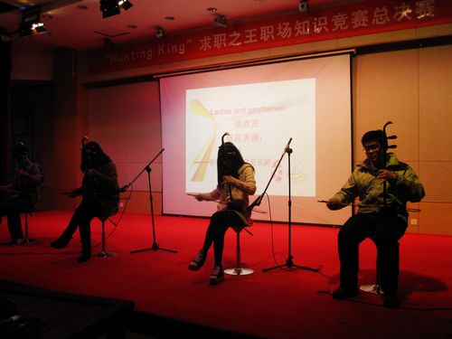 第二轮是知识竞答环节,选手依次上台,选一组题目在一分钟内进行答题。从选手们答题的迅速和肯定语气中可以知道,选手们对职场礼仪的确有了基本认识和自己的独特见解。答题过后是文艺表演环节,担任表演嘉宾的是医学部中国风社团,一曲二胡合奏《赛马》让在场观众深深领略了古典民乐的悠远意境。