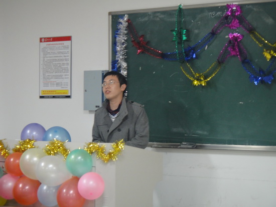 研会主席陆彦同学率先上台进行简短讲话,他肯定并感谢全体研会成员在过去一学期中的付出和努力,也指出存在的不足和失误之处,陆彦同学鼓励大家在新的学期里再接再厉,祝愿明年获得更辉煌的成绩。在新年到来之际,也预祝各位新年快乐,万事如意。