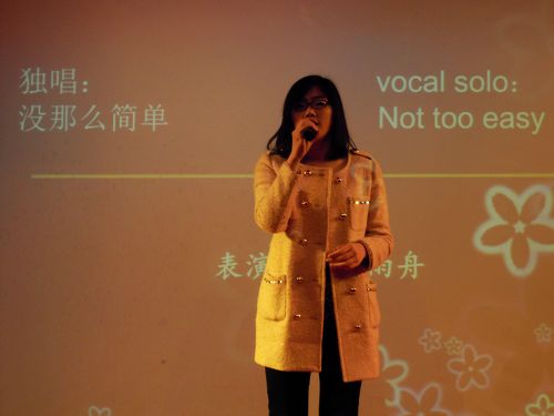 尤其值得一提的是新加坡学生的节目。嗓音充满磁性的男生和女生分工合作用流利的英文向苏大的师生介绍了新加坡的风土人情和淡马锡理工学院的教学与娱乐后,一支合唱队伍在音乐声中有序走来,在领唱的吉他声中唱了一首优美的歌曲,并用“月亮代表我的心”激起了全场的共鸣,赢得了雷鸣般的掌声。