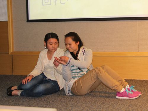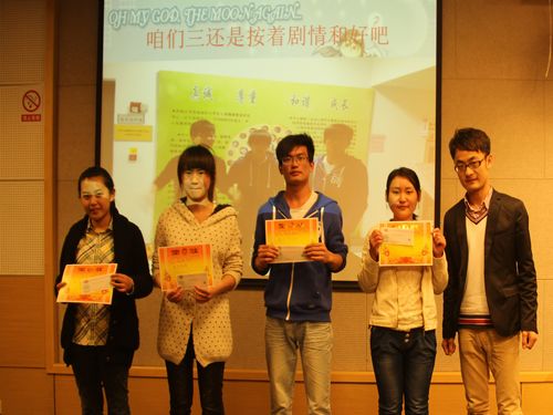 帷幕尚未拉起,两个颁奖仪式――宿舍文化争霸颁奖以及文青管主办的“学雷锋”主题征文颁奖让教室充满了欢声笑语,继而开展的猜谜和你比划我猜的小游戏,把现场气氛充分调动起来。其中,你比划我猜广受欢迎,报名踊跃,可惜题目数量有限,只进行了四场比赛。前两场在表演前举行,选手尚未进入状态,可谓笑料不断。后两场在比赛中进行,选手渐渐捉摸出技巧,不仅连说带唱,而且肢体语言相当丰富。最后周立栋和贾若雅以绝对优势在游戏中获胜。