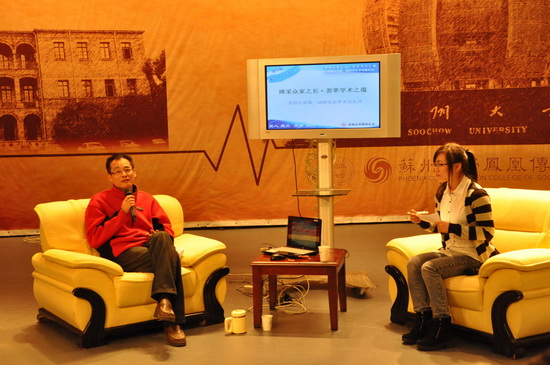 2013年4月23日晚六时三十分,由苏州大学研究生会主办、文学院研究生分会和凤凰传媒学院研究生分会联合承办的第二届学术巡礼月活动之 “大学生与文化创意”讲座于独墅湖校区二期1005幢一楼演播大厅隆重举行。此次讲座邀请了文学院老师陈小明主讲,文学院、凤凰传媒学院研究生共同聆听了本次讲座。
