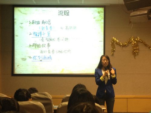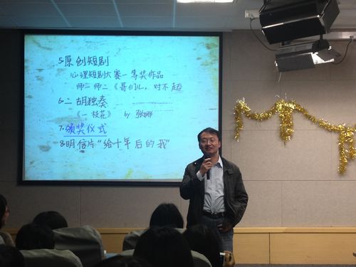 此次活动内容主要围绕“青春”这个话题展开,共有八个环节:歌曲献唱、视接千里、那些故事、你划我猜、心理剧、二胡独奏、颁奖仪式和明信片“给十年后的我”。 “歌曲献唱”是由高璐璐同学带来的一首《致青春》,缓慢的伴乐带领着场下观众们走进了青春的世界,悠扬的歌声传达出了对青春的不舍与怀念,深入人心。