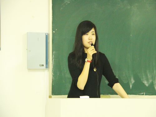 在一片掌声中,宁宇学姐登上了讲台。她是文院大四学生,曾担任文学院团委副书记,院学生会生活部部长,云天书画社社长,校艺术爱好者社副社长等多项职务,荣获人民综合三等奖学金,校优秀共青团员,校优秀共青团干部等荣誉,目前考取辽宁海事局。