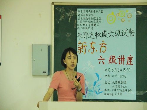 你还在为即将到来的六级考试而担忧吗?还在为没有合理高效的复习计划而焦虑吗?还在为不了解考试技巧而迷茫吗?2013年6月6日18:30,文综楼1003幢3205教室开展了四六级冲刺讲座。新东方内部讲师常玉洁老师为我们详细讲解了六级作文。此次讲座由文学院团委和文学院学工办主办,文学院学生会学习部承办。