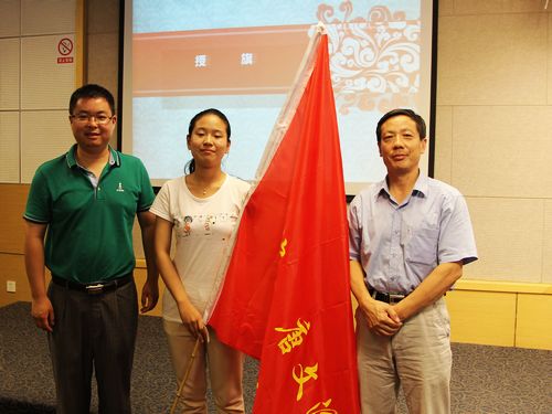 最后,王书记、肖书记与学生代表进行了授旗仪式,宣布文学院2013年暑期社会实践正式启动。希望同学们可以牢记领导老师的要求与建议,在安全的前提下,努力锻炼自己,实现实践目标。