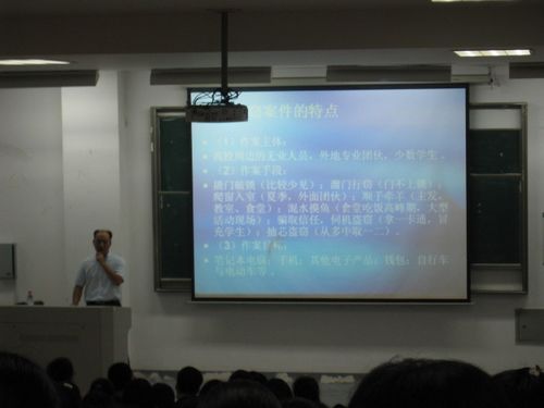 人身安全问题作为当代大学生校园生活的首要问题包括饮食安全、意外事故伤害、校园暴力、性骚扰和性侵害四个方面。其中在饮食安全方面,彭科长提醒同学们注意饮食安全,以防发生食物中毒现象,对身体健康造成伤害。第二类安全问题:财产安全问题包括盗窃和诈骗两个方面。通过列举一系列的真实案件,彭科长提醒同学们注意保管好自己的贵重物品,如电脑、手机、自行车等。在校外乘车时也要做好防盗工作,以避扒手。而诈骗则存在于生活中的每一个角落,针对中奖信息诈骗、就业兼职诈骗、网上购物诈骗等等问题,彭科长一一提出了防止被骗的方法与措施。