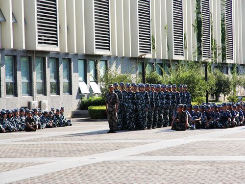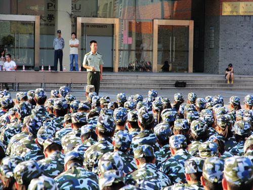 值得一提的是,下午四点在凤凰传媒学院楼前,12至21连,包括文学院、凤凰传媒学院、教育学院多个学院开展了会操演习,以检验这段时间的军训成果。13级辅导员赵曜老师以及负责本届苏大军训的团长、营长到场观摩会操,各排教官担任评委,为参加会操的各排打分,评出一二三等奖。首先,连长向大家宣布了此次会操的展示项目,参与人员及展示时间,并阐明了会操是对训练成果的初步检验,希望同学们能发挥出真正的水平,向上级展现出最优秀的一面。率先上阵的是文学院的代表队伍。文学院姑娘们喊着响亮的口号,迈着整齐的步伐走向评委席,她们精神饱满,情绪激昂,笔直的排面是这些天扎实训练的证明。在教官的指挥下,她们依次完成了转向练习、稍息立正跨列、齐步走、下蹲起立等项目,每一个动作都整齐划一,精准完成。