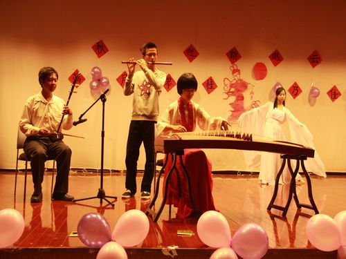 晚会随后进入了正题。此次晚会以刚刚过去不久的中秋为主题,分为三部分――新月篇、弦月篇和满月篇。在第一部分中,文学院袁璞同学率先上台,一首《老男孩》的吉他弹唱将场下气氛调动了起来。紧接着是四位新生的民乐合奏《凤凰于飞》,笛子、二胡、古筝配合默契,与伴舞惊鸿舞相得益彰,向场下的观众们充分展示了中国传统舞乐之美。一首《凤凰于飞》结束之后,伴随着动听的古筝弦音《渔舟唱晚》响起,两位主持人上台,向大家详细地介绍了中秋典故。随后,主持人与场下观众答题互动,并将现场制作的手工小礼物赠与了大家。全场的气氛也活跃轻松了起来。