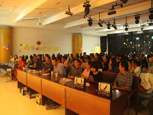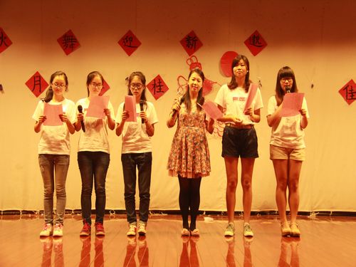 随着古朴悠扬的音乐响起,首先映入眼帘的是七名身着一袭古典白衣的女生,她们面带微笑,翩然起舞,纵情演绎着美妙的舞蹈《石湖串月》。一曲终了,开场舞毕,帷幕又缓缓收起,会场前的多媒体屏幕上开始播放一段精心制作的中秋主题视频。随后,四名主持人分别身着后羿、嫦娥、玉兔、吴刚的特色服饰款款上台,宣布此次迎新晚会正式开始,并介绍了出席晚会的嘉宾们。文学院党委张健副书记及新加坡淡马锡理工学院吴淑娇老师受邀分别上台致辞。
