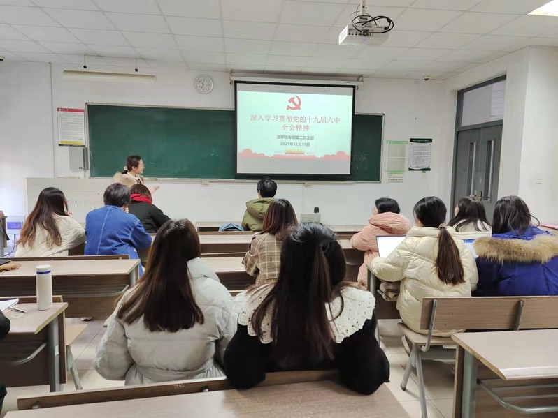 12月19日,文学院研究生专硕第二党支部组织本月的主题党日活动,内容为“深入学习贯彻党的十九届六中全会精神”。